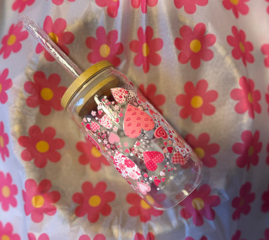 Libbey 16oz can glass cups with fun decals and glass straws
